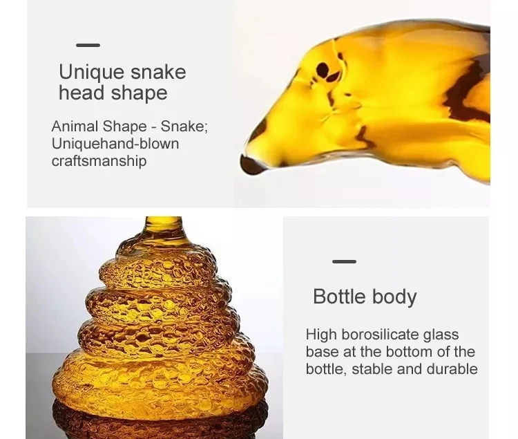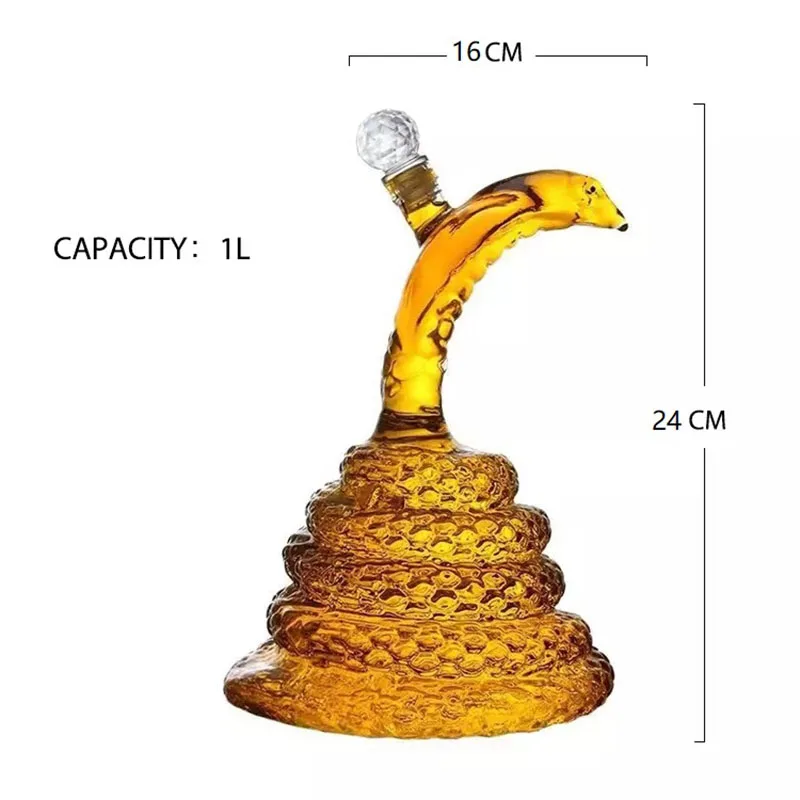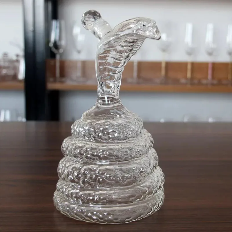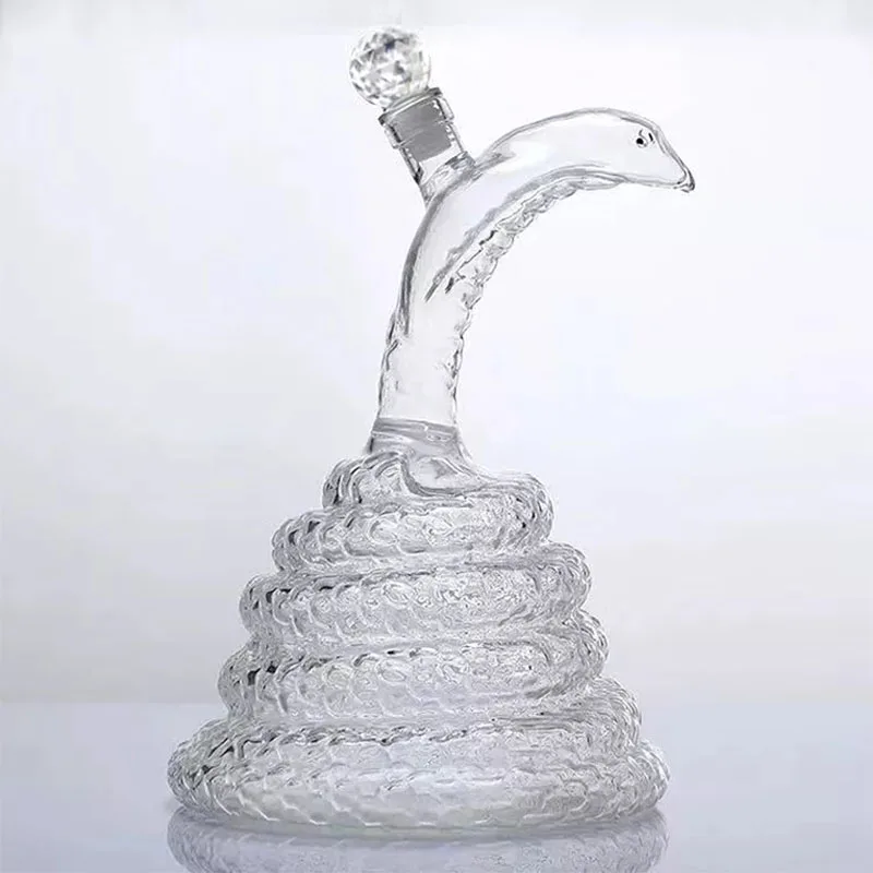 1000ml Liquor Bottles Snake Shaped Clear Whiskey Wine Decanter High Borosilicate Glass Zodiac Animal Wine Pot Craft Gift Decort